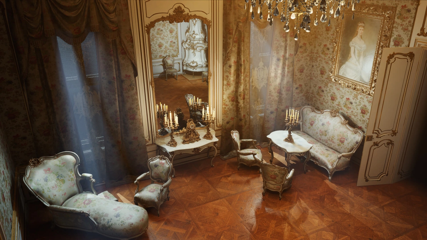 With the 3D meshes automatically constructed from this data by RealityScan, they could be brought into Unreal Engine to recreate rooms from Empress Sisi’s homes as they would have been when she lived there. “Unreal Engine’s unmatched capabilities in achieving realism enabled us to breathe life into our digitized content,” says Milan. “It ensures the assets look as authentic as they do in their natural habitat.